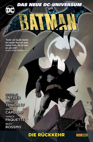 DER BATMAN DER DC YOU-ÄRA: WER IST DER WAHRE BATMAN? James Gordon ist der neue Batman - hoch gerüstet und schwer bewaffnet stellt er sich dem Superschurken Mr. Bloom, der ganz Gotham City bedroht. Doch dann wendet sich die Batman-Rüstung gegen den neuen Dunklen Ritter, und Gordon scheint seinem skrupellosen Feind schutzlos ausgeliefert! Zugleich aber erfährt Bruce Wayne, der vor Wochen seine Erinnerung verloren hat, dass er selbst einst der maskierte Beschützer von Gotham war. Und ihm wird klar, dass er sein friedvolles Leben aufgeben muss, damit der echte und einzig wahre Batman zurückkehren kann, um die Stadt zu retten... Der Abschlussband der Batman-Serie vor dem erneuten Relaunch von 2017 - geschrieben von den Top-Autoren Scott Snyder und James Tynion IV (BATMAN ETERNAL) und gezeichnet von den Superstars Greg Capullo (Spawn), Yanick Paquette (WONDER WOMAN: ERDE EINS) und Riley Rossmo (CONSTANTINE: THE HELLBLAZER).
