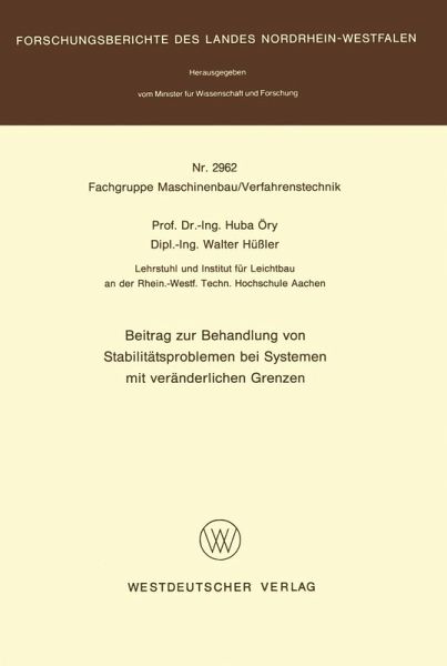 Auf verschiedenen Gebieten der Technik treten Stabilitätsprobleme auf, bei denen für das untersuchte System in verschiedenen Abschnitten unterschied liche Belastungs- bzw. Lagerungsbedingungen gelten. Die Grenzen dieser Ab schnitte sind zunächst aber unbekannt. Gemeinsam ist diesen Aufgaben, daß sie sich mit der Methode der Variationsrechnung mit veränderlichen Grenzen behandeln lassen. Einige Beispiele, die unter den Begriff "einseitige Kontaktprobleme" fallen, sollen hier erklärt und erörtert werden. Obwohl für einige idealisierte Mo delle (elastisches Verhalten, keine Reibung usw.) die prinzipiellen Zusammen hänge bekannt sind, steht eine eingehende Untersuchung für die meisten Probleme noch aus. In diesem Forschungsbericht soll dazu ein Beitrag geleistet werden. Zu Beginn sollen einige Stabilitätsprobleme, die hier angesprochen werden, er klärt werden. Wenn durch die Schwindung des Betons oder durch die Wärmeausdehnung der Metall auskleidung eine große Druckbelastung in der Auskleidung verursacht wird, beult diese kurzwellig ein (Bild 1). L. El-Bayoumy /12/ hat in seiner sehr ausführ lichen Doktorarbeit bewiesen, daß hier kein eigentlicher Verzweigungspunkt de finiert werden kann, wohl aber ein "Nachbeulgleichgewicht", welches durch eine in der Praxis immer vorhandene Störung, evtl. auch durch das Erreichen der Fließgrenze unterstützt, bei steigender Belastung zum Einbeulen führt. Die Wellenlänge ist durch die Störung b ebenfalls definiert.