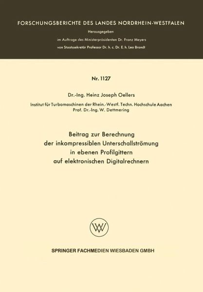 1. Einleitung und Übersicht.- 2. Aufstellung der Integralgleichung des Gitterproblems.- 3. Auflösung der Integralgleichung durch Rückführung auf ein äquivalentes Gleichungssystem.- 4. Die Strömung im Feld hinter dem Gitter.- 5. Die Berechnung der Strömungsverluste (Grenzschichtrechnung).- 6. Der Machzahleinfluß bei Gitterströmungen.- 7. Die Profilsystematik.- 8. Darstellung der Profilkontur bei punktweiser Vorgabe der Profilkoordinaten.- 9. Bemerkungen zum Rechenprogramm.- 10. Nomogramme; graphische Darstellung von Rechenergebnissen ; Vergleich verschiedener Lösungswege; Vergleich gerechneter Druckverteilungen mit gemessenen.- 11. Erläuterungen zu den dargestellten Rechenergebnissen.- 12. Literaturverzeichnis.