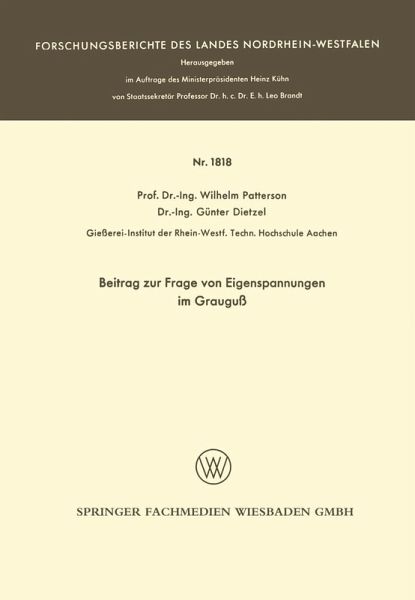 Durch inhomogene plastische Verformungen oder durch homogene Deformation inhomogener metallischer Werkstoffe entstehen Eigenspannungen. Eigenspan nungen sind Spannungen, die in einem Körper vorhanden sind, ohne daß äußere Kräfte auf diesen einwirken. Diese Spannungen stehen untereinander im Gleich gewicht. Sind sie mindestens in zwei Richtungen über makroskopische Bereiche homogen, so handelt es sich um Spannungen erster Art. Spannungen zweiter Art sind solche, die über einzelne Körner und Spannungen dritter Art diejenigen, die über wenige Atomabstände hinweg homogen sind. Eigenspannungen erster und zweiter Art bauen sich immer aus den Spannungs feldern dritter Art, d. h. den Versetzungen auf. Die im Rahmen dieser Arbeit interessierenden Eigenspannungen sind die erster Art, die auch als Stückspannun gen bezeichnet werden, und z. B. als Wärme-, Guß-, Abschreck- oder Bearbei tungsspannungen bekannt sind. Für inhomogene plastische Verformungen gibt es zahlreiche Ursachen, von denen hier nur die Wärmespannungen sowie Umwandlungen und Ausscheidungen, die mit Volumenänderungen verbunden sind, genannt seien [1]. Beim Werkstoff Grauguß hat man es in den meisten Fällen mit einer überlagerung dieser beiden Erscheinungen zu tun. Wirkt eine bekannte äußere Kraft auf einen Körper ein, so kann man die Größe und Verteilung der Spannungen berechnen und durch entsprechende Dimen sionierung des Körpers die Bruchgefahr bzw. die plastische Verformung ver meiden. Sind dagegen bei einem technischen Herstellungsprozeß ungewollt Eigenspannungen in einem Konstruktionselement entstanden, so kennt man ihre Größe und Verteilung im allgemeinen nicht. Die Messung dieser Spannungen ist in der Regel nur durch Zerstörung des in Frage kommenden Stückesmöglich.