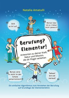Dieses Buch gibt dir wichtige Antworten über dich: Du erfährst deine Berufung, deine einzigartige Charakterstärke und die persönlichen Bedürfnisse für dein Glück. Du lässt Selbstkritik hinter dir, dein Selbstwertgefühl wächst. Du lernst schnell zu beurteilen, ob bestimmte Jobs, Lernangebote oder Sportarten zu dir passen. Du erfährst: - was die Gesellschaft von dir erwartet und welche Art der Arbeit dir Freude macht - was dich persönlich motiviert - wie du dir das Lernen, das Berufsleben und den Alltag erleichterst - wie du schnell Energie auftankst und voller Energie bleibst - wie du für immer zum großartigen Gefühl der Zufriedenheit zurückfindest - wo sich der persönliche Lebenssinn und das Glück deines Lebens verbergen Die Buchautorin - Coach, humane Personalvermittlerin und Online-Teacher - entwickelte nach zehnjähriger Suche nach sich selbst diese effektive Methode, mit der jeder ganz einfach seine Berufung im Leben verstehen und finden kann. Dieses Buch spart dir etliche Lebensjahre für die Suche nach dir selbst und gibt dir die Chance, schon heute in deinem Lieblingsjob erfolgreich zu sein. Es erwarten dich anschauliche Tabellen, einfache Aufgaben und viele Beispiele aus dem echten Leben. Diese Methode würde sogar ein Kind verstehen. Einem Schulabgänger hilft sie bei der Berufsentscheidung und einem Erwachsenen hilft sie, das Leben zu verstehen und Erfüllung im Job zu finden.