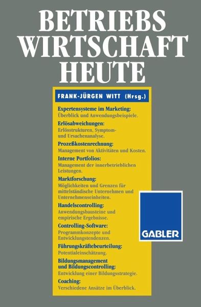 Expertensysteme im Marketing - Übersicht und Anwendungsbeispiele.- Erlösabweichungen.- Prozeßkostenrechnung.- Management mit internen Portfolios.- Marktforschung im Mittelstandsunternehmen und in einzelnen Unternehmens sparten.- Handelscontrolling.- Softwareunterstützung für das Controllerreporting.- Führungskräftebeurteilung.- Bildungsmanagement und Bildungscontrolling.- Coaching für Manager.- "Lesestoff als Anreiz für die praktische Weiterarbeit.- Die Autoren.- Stichwortverzeichnis.- Portrait: Steinbeis-Stiftung für Wirtschaftsförderung.- Portrait: Das Steinbeis-Transferzentrum "Controlling & Management - Freiburg".