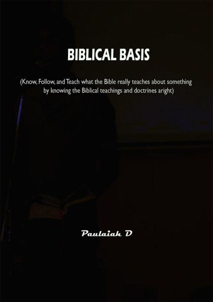 'Biblical Basis' has a lot of valuable teachings for all the believers for knowing how to know, study, teach, and follow the teachings and doctrines of the Bible. It will surely help every believer to enhance the faith in Christ, follow the Lord Jesus Christ, and to be responsible in our personal and social life, having the attitude as same as that of our Lord Jesus Christ. It will surely inspire every believer to have the love of Christ, and thereby motivate us to love others as ourselves in the midst of their mistakes towards us personally and generally.