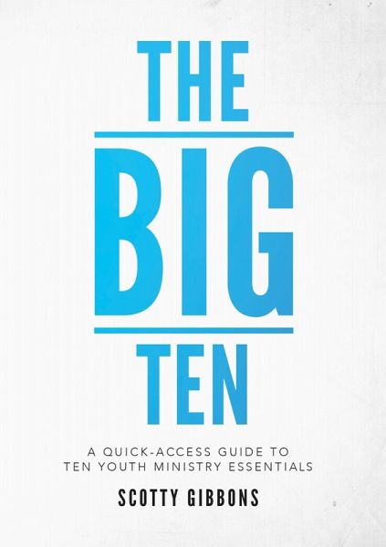 This quick-access resource is a must-have for your ministry! Scotty Gibbons draws on 20 years of youth ministry experience to cut out the fluff and give you an invaluable guide. Get the absolute best, most important thoughts on the top 10 youth ministry essentials. Filled with brief, practical nuggets of helpful information and insight, The Big Ten will help answer your questions and address your problems. Includes essentials to help you . . . - establish healthy communication with your lead pastor - write sermon messages that move students to action - create a safe place for students to find and follow Jesus - plan unforgettable retreats - make the most of any budget Whatever your role in your youth ministry, The Big Ten will be a valuable resource to you.