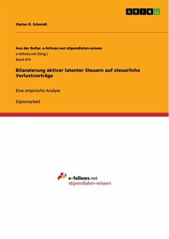 Diplomarbeit aus dem Jahr 2010 im Fachbereich BWL - Rechnungswesen, Bilanzierung, Steuern, Note: 1,3, Friedrich-Alexander-Universität Erlangen-Nürnberg, Sprache: Deutsch, Abstract: Die vorliegende Arbeit analysiert empirisch die Auswirkungen der Finanzkrise auf das Ansatzverhalten steuerlicher Verlustvorträge sowie deren Effekt auf das Eigenkapital. Zentrale Hypothesen sind, dass durch die Finanzkrise weniger Verlustvorträge aktiviert werden und dass der Effekt auf das Eigenkapital abnimmt. Zur Überprüfung der Hypothesen werden die IFRS-Geschäftsberichte von 54 Unternehmen aus dem DAX (20) sowie MDAX (34) der Jahre 2005 bis 2009 analysiert. Für die Abgrenzung der Indizes wurde auf die Zusammensetzung zum 1. Mai 2010 abgestellt. Die Analyse erfolgte getrennt nach Indizes als auch nach Supersektoren, deren Abgrenzung von der Deutschen Börse übernommen worden ist. Die relevanten Informationen wurden vornehmlich aus den Anhangsangaben der Unternehmen entnommen und waren damit abhängig von der Qualität der Unternehmenspublizität.