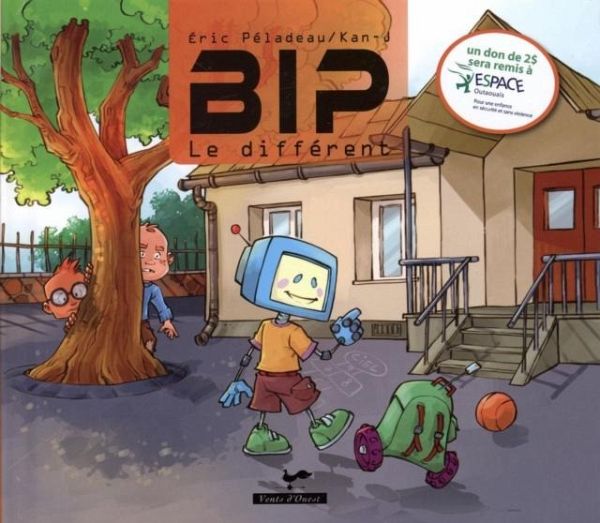 Bip le differenttextes d'Eric Pladeau et dessins de Kan-JBip est un garon brillant. Il adore s'amuser, rire et apprendre comme bien d'autres enfants. Il a tout de mme quelque chose d'un peu diffrent. Bip est un robot ! Un robot de cinq ans. Aujourd'hui, c'est un grand jour. Un jour, qu'il attend depuis son activation ! Il entre enfin l'cole, son processeur bourdonne de palpitations. Bip le diffrent, c'est une histoire fantaisiste dans laquelle un petit robot entre l'cole, mais avec des enfants humains. Sa diffrence est toute de suite remarque, surtout par Bruno, le fauteur de trouble de la classe. Arrivera-t-il faire sa place dans sa nouvelle cole ? C'est ce que vous dcouvrirez dans cette histoire qui dnonce le taxage et l'intolrance des autres.