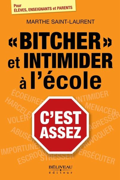 Pour eleves, enseignant et parents. Enfin un guide complet rempli de temoignages, de conseils, de signes avant-coureurs et, surtout, de pistes de solutions qui permettent souvent d'eviter des traumatismes que l'eleve pourrait trainer toute sa vie. Pour l'lve : Tu trouveras des solutions et tu apprendras te sortir de situations o tu te sens menac et dmoli. Tu seras galement en mesure de dsamorcer la mchancet autour de toi. Pour l'enseignement : Vous devez intervenir rapidement, soit en utilisant les ressources disponibles l'cole ou l'extrieur de l'cole, soit en travaillant en troite collaboration avec les parents. Pour les parents : Quelques conseils afin de vous aider dtecter que votre enfant a de srieux problmes l'cole. Quels sont les signes avant-coureurs ? Quoi faire pour tablir une communication empathique et non un jugement afin de l'aider ? Il faut que l'agression psychologique cesselves, enseignants et parents, vous ferez une diffrence, vous d'agir !