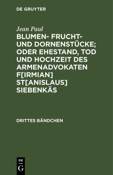 ![Blumen- Frucht- und Dornenstücke; oder Ehestand, Tod und Hochzeit des Armenadvokaten F[irmian] St[anislaus] Siebenkäs (eBook, PDF) - Paul, Jean Blumen- Frucht- und Dornenstücke; oder Ehestand, Tod und Hochzeit des Armenadvokaten F[irmian] St[anislaus] Siebenkäs (eBook, PDF) - Paul, Jean](https://bilder.buecher.de/produkte/54/54114/54114729n.jpg)