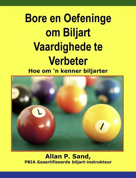Wil jy ernstig 'n vaardige speler word? Wil jy minder verloor en meer dikwels wen? Indien wel, moet u die belangrikheid van die praktyk verstaan. Tyd moet spandeer word (daagliks of weekliks) om te leer hoe om die balle te dwing om jou bedoelings te gehoorsaam. Selfs 15-20 minute per week van gefokusde leer sal jou speelvaardighede verbeter. Hierdie boek is jou kortpad geleentheid om jou vaardighede te bevorder en meer speletjies te wen. Hierdie oefeninge en oefeninge is ontwerp om al jou vaardighede te verbeter - fisies en geestelik. Jou oefensessies sal baie interessanter en uitdagend wees. Daar is honderde oefeninge en oefeninge. Elke speel vaardigheid is ingesluit - cue bal beheer (omgekeerde spin, top spin), sakke vaardighede (reguit en baie verskillende hoeke), en meer - baie meer. +++++++++ Hierdie oefeninge en oefeninge is gebaseer op die konsep van progressiewe vordering. Begin met 'n maklike opstelling. As jy gemaklik is, verhoog die moeilikheidsgraad. Gebruik hierdie probleme op twee maniere. By die huis, hersien 'n oefening. Oorweeg hoe jy die skoot moet speel. Stel dan die balposisies op die tafel in jou kop voor. Wees versigtig en deeglik. Oorweeg variasies op die probleem. Kan u dit teen verskillende snelhede doen? Wat is die gevolge? Maak notas soos jy dink oor verskillende idees - aannames, moontlikhede en variasies. Kies dan die probleem wat jy wil oplos, by die oefentafel. Sit die papierbevestigingsringe. Stel die bal konfigurasie op. Herhaal totdat die opset maklik is, probeer dan die oefening met die linker- en regterspan op die bal - en teen verskillende snelhede. Kyk na die resultate en maak aanpassings.