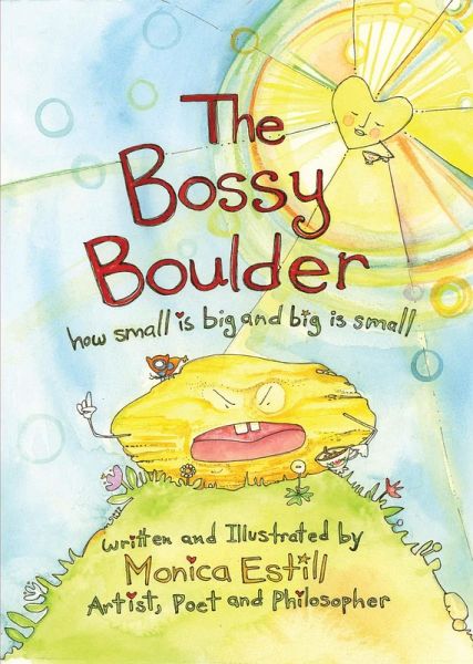 The Bossy Boulder is on top of the world when Time and Change push him off his high place. His world crumbles and his is broken. Again and again he falls and breaks. He goes through the stages of grief and as he gets smaller he comes to acceptance. Soon he is sand among sand; no bigger no smaller--only then does he realize that he is one with the mountain.
