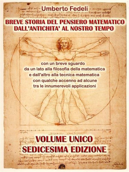Sedicesima Edizione. Volume unico. Versione del libro in formato ePub. Questo libro traccia una rapida panoramica, ma percorre un lungo cammino dalle prime speculazioni sui numeri naturali e sui triangoli numerici in terra egiziana fino alle più moderne teorie matematiche astratte ed assiomatiche, ma troviamo pure la fisica classica non relativistica e relativistica, la fisica quantistica, la fisica atomica, l'elettromagnetismo, la termodinamica, la fisica ed ingegneria nucleare, ecc., ecc., nonché brevemente riportate le relative storie, oltre ad argomenti di matematica applicata in particolare riguardo i personal computer, l'informatica e l'ingegneria hardware-software, l'elettronica teorica ed applicata analogica e numerica, le reti sequenziali, la rete Internet, le comunicazioni elettriche, la telefonia fissa e mobile, la multimedialità, teoria delle reti elettriche, teoria dei sistemi e dei controlli automatici, ecc., ed anche scienza delle costruzioni, tecnica delle costruzioni, idraulica, ecc., ecc. E' suddiviso in capitoli e sezioni, ma, per scelta iniziale, non è strutturato in paragrafi, onde sarebbe opportuno usare efficacemente ed efficientemente la casella di ricerca di parole-frasi per entrare nel testo scrivendovi nomi di matematici, fisici, ingegneri, filosofi e pensatori vari, tipi di equazioni algebriche e differenziali, di formule, di funzioni e di tecniche matematiche, nonché nomi di Aziende, società ed organizzazioni note in campo matematico, fisico, ingegneristico, creando anche numerose voci di segnalibro. I lettori lungo il testo vi troveranno molto più di quanto si aspettino. Da Edizione 13, ogni edizione è composta di 4 Volumi da scaricare separatamente, salvo eccezione in volume unico. La presente edizione contiene la grande parte del contenuto delle edizioni precedenti con qualche loro integrazione e qualche loro modifica od eliminazione, ed in più aggiunge la sua specifica parte in particolare attinente al tempo più recente, ma sarebbe opportuno scaricare e leggere tutte le edizioni pubblicate di questo libro, in volume singolo fino ad Edizione 12, od in 4 volumi da Edizione 13 in poi. Buona lettura.