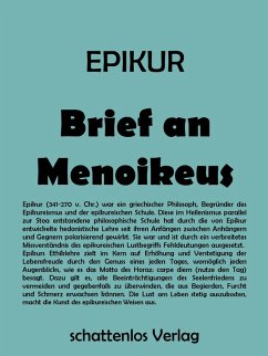 Epikur (341-270 v. Chr.) war ein griechischer Philosoph, Begründer des Epikureismus und der epikureischen Schule. Diese im Hellenismus parallel zur Stoa entstandene philosophische Schule hat durch die von Epikur entwickelte hedonistische Lehre seit ihren Anfängen zwischen Anhängern und Gegnern polarisierend gewirkt. Sie war und ist durch ein verbreitetes Missverständnis des epikureischen Lustbegriffs Fehldeutungen ausgesetzt. Epikurs Ethiklehre zielt im Kern auf Erhöhung und Verstetigung der Lebensfreude durch den Genuss eines jeden Tages, womöglich jeden Augenblicks, wie es das Motto des Horaz: carpe diem (nutze den Tag) besagt. Dazu gilt es, alle Beeinträchtigungen des Seelenfriedens zu vermeiden und gegebenfalls zu überwinden, die aus Begierden, Furcht und Schmerz erwachsen können. Die Lust am Leben stetig auszukosten, macht die Kunst des epikureischen Weisen aus.