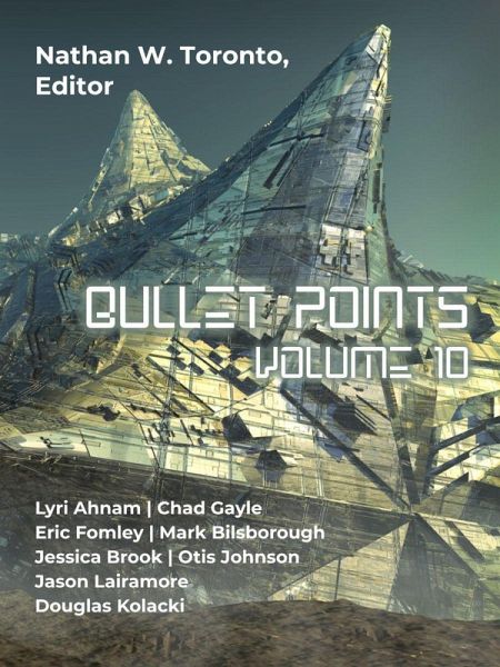Bullet Points captures the complexity, tragedy, and hope of warfare and violence in human and nonhuman society, with reprints and original stories every three months. The July 2025 issue (Volume 10) presents stories about war with aliens. Lyri Ahnam, "Captain Palaio's Twilight Flight": The future of an entire species rests on Captain Palaio. Chad Gayle, "The Hatchling": Junspaar of Mekka-Seb, besieger of the Horde of Glaar, seeks glory for Vushturra. Eric Fomley, "Contact Lost": Jax and Vander take a flyer on a Risk Assessment mission. Jessica Brook, "The Blind Mystic": Myrilla Nakamura deals with a madwoman who makes people look at the sun. Jason Lairamore, "You Think You Are Mighty": The survivor of an exploratory mission prepares the world for an alien invasion. Otis Johnson, "Hades' Redemption": Hades must save Los Angeles from an extradimensional alien invasion. Mark Bilsborough, "Wine, Cheese, and Oblivion": The sole survivor of an alien attack deals with the suspicions of his rescuers. Douglas Kolacki, "Arachnid Mabel": Major Keith Park must extract a traitor from enemy territory before the armistice expires. Nathan W. Toronto, "Review of Archangel: Fallen, by Rick Partlow": Brent Parthet learns that he may have fought a war for the wrong side. Nathan W. Toronto, "Review of Andor, Season 2": Cassian Andor gets sucked into the rebellion against the Empire. Nathan W. Toronto, "The Promise of Military Intellectualism": Stories about war with aliens can teach us a great deal about the power of fighting without hate.