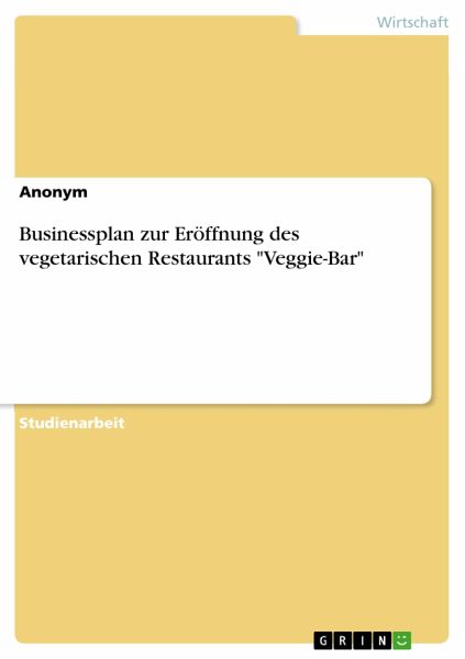 Studienarbeit aus dem Jahr 2010 im Fachbereich BWL - Unternehmensgründung, Start-ups, Businesspläne, Note: 1,0, , Sprache: Deutsch, Abstract: Die Veggie GmbH hat es sich zum Ziel gesetzt, ein vegetarisches Restaurant zu eröffnen. Die GmbH hat die Gesellschafter Chris Stammer, Jana Schliehbaum und Erwin Mustermann. Herr Mustermann übernimmt die Position des Geschäftsführers sowie den kaufmännischen Bereich, da er eine Ausbildung und langjährige Berufserfahrung als Hotelkaufmann vorzuweisen hat. Herr Stammer dagegen ist zuständig für Service und den Betrieb der Cocktailbar. Er durchlief eine Ausbildung zum Hotelfachmann und bewies seine Qualitäten bereits auf einem angesehenen Kreuzfahrtschiff. Der Bereich Küche sowie der Straßenverkauf fallen in das Aufgabengebiet von Jana Schliehbaum. Durch ihre abgeschlossene Ausbildung zur Köchin und mehrjährige Arbeit in anerkannten Küchen, eignet sie sich für diese Position. Das Motiv der Gründung ist, dass sich die Unternehmer neuen Herausforderungen stellen wollen. Wir bieten eine abwechslungsreiche fleischlose Speisekarte und eine vielfältige Getränkekarte an. Die Besonderheit unserer Geschäftsidee liegt darin, dass wir für unsere Gerichte und Getränke ausschließlich Waren aus kontrolliert biologischem Anbau (im Falle unserer Fischwochen aus biologischer Aufzucht) verwenden.