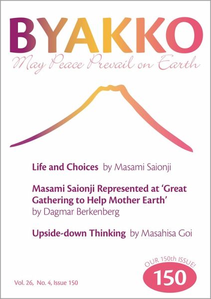Our 150th issue! In an excerpt from the first chapter of her book "Life and Choices", Masami Saionji uses her own early life as an example for the way our daily choices and decisions give shape to our future. Two articles report on Masami and Hiroo Saionji's reception of the Luxembourg Peace Prize and Masami's representation at the 2019 Great Gathering to Help Mother Earth in Bad Blumau, Austria. Also featuring: part 2 of "Upside-down Thinking" by Masahisa Goi, "Everyone's Wish" by Masami Saionji, a report on the Global Prayers offered at Fuji Sanctuary in September 2019, and a continuation of "The Angel and the Mystery of the Red Tulip" by Masao Murata.