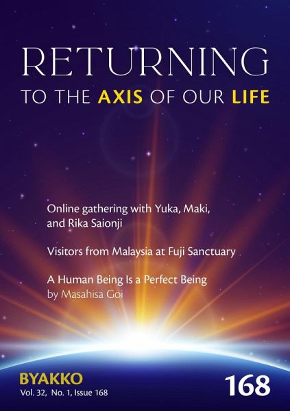 This issue features a report on the online gathering coordinated at Fuji Sanctuary on January 25, and another on visitors from Malaysia to Fuji Sanctuary. Other features include "A Breathing Method for Opening the Chakras" by Masami Saionji, "A Human Being Is a Perfect Being" by Masahisa Goi, and other book chapters by Masahisa Goi, as well as news and messages from overseas.