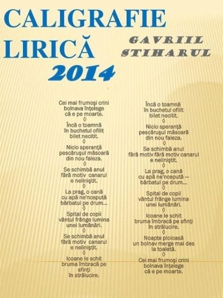 "Caligrafie lirica" este un grupaj de haikuuri traditionale asa cum au fost vazute de un est-european.