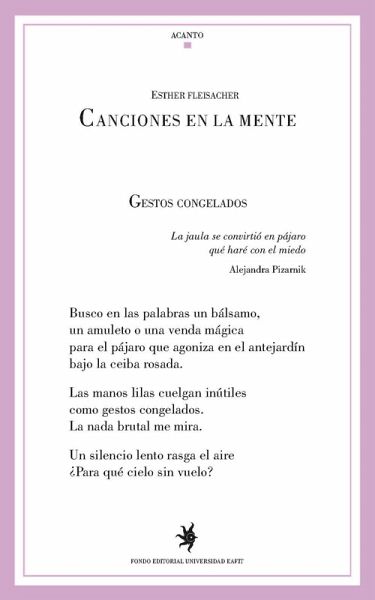 La autora lo ha expresado siempre, el origen de sus composiciones, está en una voz interior que de repente la urge y mueve a la escritura, evento común tanto a sus cuentos como a su poesía. No una imagen en particular, o una idea, o una palabra, como suele suceder con otros autores, sino "una voz", y es esa voz, el tono de esa voz, sin imposturas ni artificios, pura, propia de quien medita y habla consigo misma, la que respalda la verdad de los poemas en Canciones en la mente.