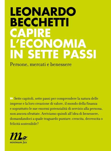 L'economia, «scienza estremamente complessa e assolutamente inesatta», detta le regole di un gioco che ci coinvolge quotidianamente e in cui il rischio è altissimo, riguardando non solo il benessere delle nostre tasche ma gran parte della felicità di noi tutti e, a lungo termine, la sopravvivenza stessa della nostra specie su un pianeta sempre più esausto. Capire l'economia in sette passi accompagna il lettore in un mondo affascinante, complesso e sinora riservato a una casta chiusa di specialisti, illustrando i principi che sono alla base dell'infrastruttura sociale del nostro sistema, quell'intreccio di persone e mercati che raramente si palesa agli occhi dei comuni cittadini. Leonardo Becchetti, con sentimento e straordinaria chiarezza, ci indica il percorso e gli strumenti per orientare le nostre scelte, ricordandoci quanto l'economia serva a preservare e promuovere valori fondamentali come libertà, giustizia ed equità.