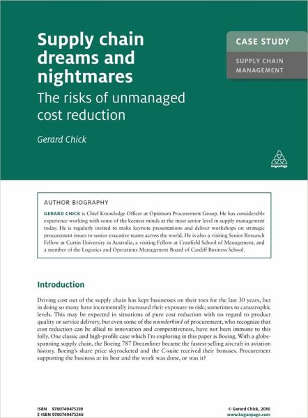 Supply Chain Dreams and Nightmares looks at one classic and high-profile case, Boeing, which has a globe-spanning supply chain. Aimed at students on supply chain management or procurement courses, the case shows how companies can avoid increasing their exposure to risk.