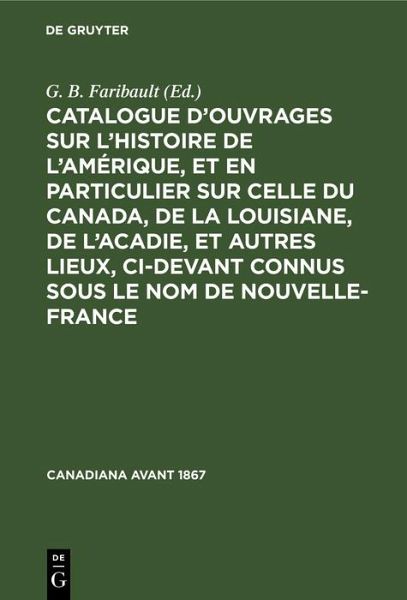 No detailed description available for "Catalogue d'ouvrages sur l'histoire de l'Amérique, et en particulier sur celle du Canada, de la Louisiane, de l'Acadie, et autres lieux, ci-devant connus sous le nom de Nouvelle-France".
