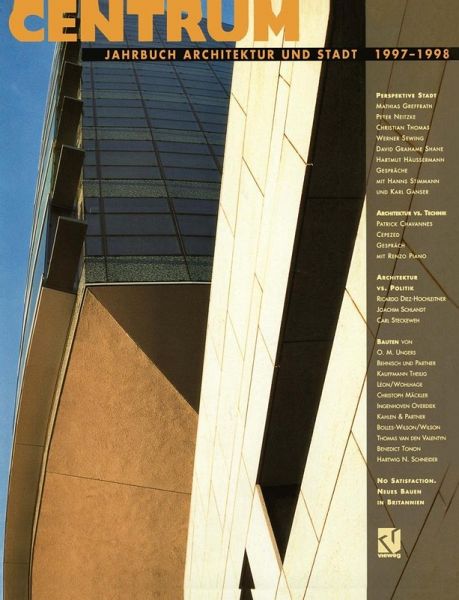 "Perspektive Stadt" heißt das Schwerpunktthema im sechsten Jahrgang einer Publikation, der man inzwischen bescheinigt, " zu einem wertvollen Korrektiv in der Phalanx gesichtsloser Verlagsprodukte" (DBZ, 1/97) geworden zu sein. "Perspektive Stadt": notwendigerweise mehr Fragen als Antworten. Fragen nach der drohenden Amerikanisierung der Städte in Deutschland. Berlin: Fragen nach den sozialen und wirtschaftlichen Tatsachen jenseits der Bilder, die die Urheber des "Planwerks" verbreiten. Ruhrgebiet: Fragen nach Umfang und Folgen des Strukturwandels in einer Region ohne Arbeit. Fragen nach der Rolle und dem Rang des Zentrums wie nach der Bedeutung der Peripherien: Berlin vs. Ruhrgebiet. Aspekte unterschiedlicher Maßstäbe, Erfahrungen, Wünsche, Perspektiven. Beiträge von Andreas Denk, Mathias Greffrath, Hartmut Häußermann, Peter Neitzke, Robert Kaltenbrunner, Andreas Rossmann, Werner Sewing, David Grahame Shane, sowie ein Interview mit Hans Stimmann (Reinhart Wustlich) "Architektur vs. Technik": Tradition und Modernität: Renzo Piano im Gespräch mit Reinhart Wustlich, neue Bauten von Patrick Chavannes, Paris, CEPEZED, Delft; Manfred Hegger, sowie ein Beitrag über den Träger des Constructec-Preises 1997, Theo Hotz, Zürich. "Architektur vs. Politik": Beiträge zur Berufsperspektive von Architekten: Ricardo Dietz- Hochleitner, Joachim Schlandt, Carl Steckeweh " Bauten": Neue Arbeiten von Bangert, Behnisch & Partner, Bolles-Wilson und Wilson, Goldstein, Ingenhoven, Overdiek & Partner, Joppien-Dietz, Kauffmann & Thellig, Krenz, Leon und Wohlhage, Mäckler, Petzinka, Pink und Partner, Schneider, Szyskowitz/ Kowalski, Ungers, Zamp-Kelp und anderen. "Über die Grenzen": No satisfaction. Reinhart Wustlich über die Architektur in Britannien "Bücher": Wichtige deutsche und amerikanische Neuerscheinungen, kritisch gelesen. (...) Centrum, beide Jahrbücher sind unentbehrlich (...) Der Tagesspiegel Nr.16 S.26 10.11.97 Rezensionersc