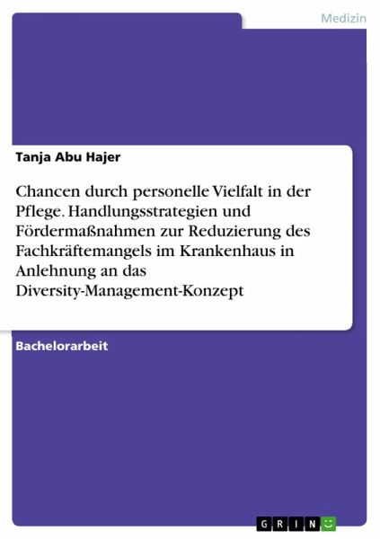 Bachelorarbeit aus dem Jahr 2017 im Fachbereich Pflegewissenschaft - Pflegemanagement, Note: 1,3, Hamburger Fern-Hochschule, Sprache: Deutsch, Abstract: Vor dem Hintergrund des demografischen Wandels in Deutschland, dem steigenden Personalbedarf und dem vorherrschenden Fachkräftemangel in der Gesundheits- und Krankenpflege ergibt sich für Krankenhäuser ein dringender Handlungsbedarf, um neue Fachkräfte für die Pflege zu gewinnen und die bestehende Belegschaft zu halten. Gleichzeitig gestaltet sich die Zusammensetzung der Pflegeteams mit der Zuwanderung ausländischer Fachkräfte, den Veränderungen in der Altersstruktur und dem Ungleichgewicht in der Geschlechterverteilung immer heterogener. Diese personelle Vielfalt bringt nicht nur Herausforderungen, sondern auch Chancen mit sich. Im Gegensatz zu Deutschland wurde in den USA bereits früh erkannt, dass die Vielfalt in Teams große Potentiale birgt. Wissenschaftlich fundiert wurden diese Erkenntnisse mit der Entwicklung des Diversity-Management-Konzeptes. Dieses Konzept zielt darauf ab, die personelle Vielfalt in Organisationen mit entsprechenden Handlungsstrategien zu managen. Dadurch richtet sich die Perspektive auf die positiven Aspekte von Diversity, wobei Vorurteile aufgrund von Geschlecht, Nationalität oder Generationszugehörigkeit abgebaut werden. In Anlehnung an das Diversity-Management-Konzept zeigt die vorliegende Arbeit die Chancen personeller Vielfalt in der Pflege sowie entsprechende Handlungsstrategien und Maßnahmen auf, um diese zu fördern. Gleichzeitig wird hierbei der Nutzen für Krankenhäuser im Hinblick auf eine mögliche Reduzierung des Fachkräftemangels erörtert.