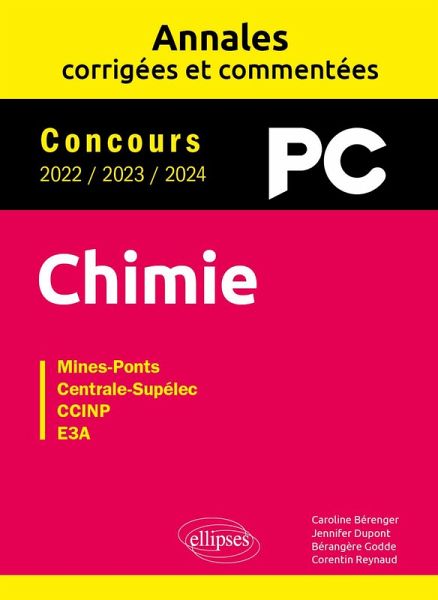 Annales corrigées et commentées de chimie de la filière PC pour les années 2022, 2023 et 2024.