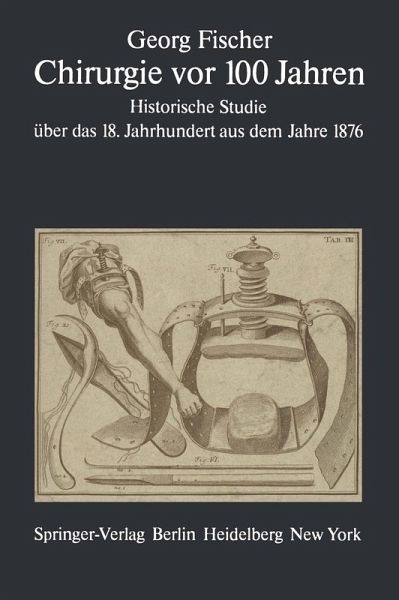 Inhaltsverzeichniss.- I. Doctor und Barbier.- II. Der Marktschreier.- III. Auf der Universität.- IV. Notizen über Hospitäler.- V. Chirurgischer Unterricht und Literatur.- VI. Lorenz Heister und Zeitgenossen.- VII. Der Aufschwung der deutschen Chirurgie unter August.- VIII. Professoren der Chirurgie und praktische Wundärzte.- IX. Die Académie royale de chirurgie in Paris.- X. Englische Chirurgie.- XI. Kriegschirurgie unter Friedrich dem Grossen.- XII. Französische und englische Kriegschirurgie.- XIII. Deutsche Medicin.- XIV. Entziindung und Wunden.- XV. Krankheiten der Knochen, Gelenke und Muskeln.- XVI. Krankheiten der Gefässe, Nerven und Haut. Neubildungen.- XVII. Krankheiten des Kopfes und Gesichts.- XVIII. Krankheiten des Halses, der Brust und des Unterleibes.- XIX. Krankheiten der Harn- und Geschlechtsorgane und des Mastdarms.- XX. Schusswunden, Amputation, Exarticulation, Resection.