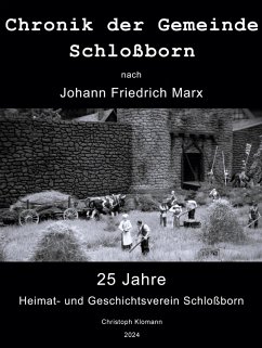 Die Chronik der Gemeinde Schloßborn nach Johann Friedrich Marx beschreibt die Entwicklung eines Taunusdorfes von den frühesten Zeiten bis in die Mitte des 20. Jahrhunderts. Als langjähriger Bürgermeister von Schloßborn, sammelte Marx alle ihm zur Verfügung stehenden Dokumente, Urkunden, Gemeinderechnungen und Informationen vergangener Zeiten und schrieb diese in 2 Bänden, handschriftlich in Sütterlin, auf über 300 Seiten, in den Jahren 1946/47 mit Ergänzungen bis 1952 nieder. So entstand eine Zeitkapsel, die nicht nur für Schloßborn, sondern auch für viele andere Taunusdörfer stellvertretend steht. Dem Heimat- und Geschichtsverein Schloßborn ist es nun gelungen, nach 77 Jahren, zu seinem 25-jährigen Jubiläum, diese beiden, geschichtsträchtigen Bände zu transkribieren und in Form eines 372-seitigen Buches zu veröffentlichen.