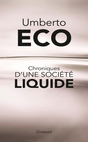 Chroniques d'une société liquide rassemble quelques-uns des textes publiés entre 2000 et 2015. Umberto Eco y livre sa vision du monde à travers de brèves réflexions empreintes d'humour, d'érudition et d'une rare acuité. Empruntant au sociologue Zygmunt Bauman le concept de « société liquide », il interroge le monde contemporain et en dessine avec malice et ironie les visages les plus familiers : les mascarades des politiques, l'obsession de visibilité que nous semblons tous (ou presque) partager, la vie en symbiose que nous entretenons avec nos téléphones portables, la mauvaise éducation, et bien d'autres encore... Cette anthologie préparée par l'auteur et publiée de manière posthume témoigne, une fois encore, de la justesse du regard qu'Umberto Eco portait sur notre époque et confirme son talent de visionnaire amusé.