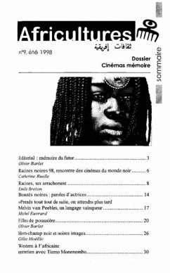 Un grand dossier sur la question de la memoire dans le cinema noir, avec de nombreux articles et entretiens. Puis toute l'actualite culturelle est passee en revue : cinema (Tunisiennes, La Revanche de Lucy), musique (musiques cubaines et voix de femmes), theatre (entretien avec Malmouna Coulibaly), livres, art, et l'agenda avec tous les evenements culturels de l'ete.
