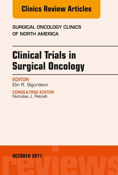 This issue of Surgical Oncology Clinics of North America, guest edited by Dr. Elin R. Sigurdson, is devoted to Clinical Trials in Surgical Oncology. Dr. Sigurdson has assembled expert authors to review the following topics: Commentary on Randomized Controlled Trials; Randomized Clinical Trials in Soft Tissue Sarcoma; Randomized Clinical Trials in Gastrointestinal Stromal Tumors; Randomized Clinical Trials in Melanoma; Randomized Clinical Trials in Breast Cancer; Randomized Clinical Trials in Gastroesophageal Carcinoma; Randomized Clinical Trials in Hepatocellular Carcinoma; An Update on Randomized Clinical Trials in Advanced and Metastatic Colorectal Carcinoma; Randomized Clinical Trials in Colon and Rectal Cancer; Randomized Clinical Trials in Anal Cancers; The Elderly in Randomized Clinical Trials; Hereditary Syndromes in Clinical Trials; Future Clinical Trials: Genetically Driven Trials; Randomized Clinical Trials in Neuroendocrine Tumors, and more!