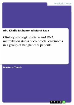 Master's Thesis from the year 2010 in the subject Medicine - Pathology, grade: A, , course: M. Phil, language: English, abstract: Colorectal cancer (CRC) is the third most common cancer in the world and the second leading cause of cancer related deaths in the United States. Globally, the incidence of CRC varies widely with higher incidence rates in North America, Australia and Northern and Western Europe (Aljebreen, 2007). The lifetime risk of developing CRC is about 6% or one in 18. Over 95% of these CRC is adenocarcinoma (Kim et al, 2010). CRC is relatively uncommon in Indian sub continent. In India the incidence of colorectal cancer was found to be 4.2 and 3.2 per hundred thousand for male and female population respectively (Afroza et al, 2007). The incidence of colorectal cancer in Bangladesh is not exactly known, it appears to be common and occur in younger age group with slight male preponderence. Average age at diagnosis is 10 years less than the developed countries. Rectal bleeding is the most common symptoms and majority of the carcinoma were in the rectum (Hossain, 2007). The peak incidence of colorectal carcinoma is in between the age of 60 and 69 years.Fewer than 20% occur before the age of 50 years. Males are affected slightly more than females (Turner, 2010). Colorectal carcinoma are rare before the age of 40 without genetic predisposition or without predisposing factors (Hamilton, 2000). Early detection of colonic cancers is a challenging task as because clinical symptoms develop slowly. Per rectal bleeding is common. Many patients experience change in bowel habit (Yawe et al, 2007). Screening tests like digital rectal examination, simple laboratoryinvestigations like estimation of CEA, estimation of haemoglobin, faecal occult blood test,and visualization of the gut mucosa by sigmoidoscopy and colonoscopy examination may be a help in the diagnosis (Aljebreen, 2007). Colorectal cancer is a multifactorial disease process. Etiology contributing from environmental factors including diatery factors, obesity, alcohol intake, smoking, life style and genetic and epigenetic abnormalities. The molecular events that leads to CRC is heterogenous and includes genetic and epigenetic abnormalities. Genetic events in colorectal cancer is genetic alteration of the APC gene, mutations in the KRAS and P53 gene and abnormalities in the DNA mismatched repair genes (Turner, 2010). Epigenetic changes, which is the heritable changes in gene function that are not due to changes in the DNA sequence is an important pathway in the mechanism of tumerogenesis in colorectal cancer. [...]