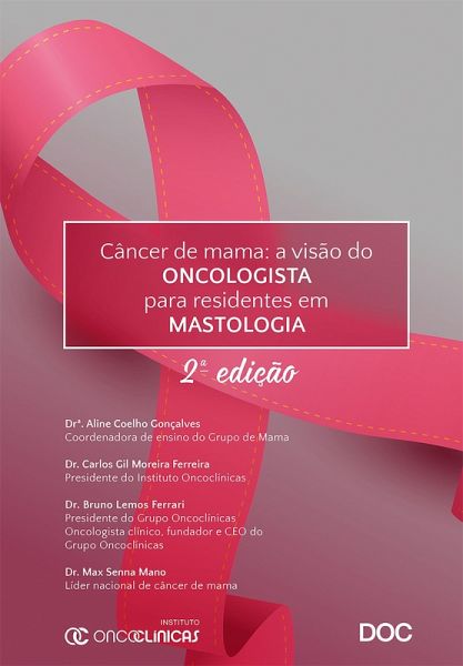 Câncer de mama: A visão do oncologista para residentes em mastologia Com base no curso realizado anualmente pelo Instituto Oncoclínicas e difundido pelo Brasil, cujo intuito é atender a demanda em Mastologia e conhecer um pouco mais sobre a Oncologia. A ideia de oncologistas transmitindo ensinamentos sobre seus tratamentos para mastologistas. A obra mostra a necessidade de opiniões de outros especialistas na prática clínica diária, assim como a necessidade de uma engrenagem perfeita entre as várias modalidades terapêuticas empregadas no câncer de mama, ampliado às necessidades educacionais dos médicos. O objetivo é proporcionar a você, residente de Mastologia, Ginecologia e Cirurgia Oncológica uma visão do tratamento oncológico não cirúrgico do paciente com câncer de mama, colaborando, assim, para a sua formação e, consequentemente, para o melhor cuidado do paciente com câncer de mama. Pontos citados: - Principais drogas no tratamento do câncer de mama - Tratamento adjuvante de câncer de mama - Oncogenética e câncer de mama - Manejo de metástases de câncer de mama em SNC