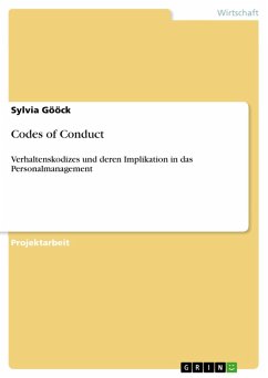 Projektarbeit aus dem Jahr 2009 im Fachbereich BWL - Allgemeines, Note: 1,3, AKAD-Fachhochschule Leipzig, Sprache: Deutsch, Abstract: Aufgabe dieser Arbeit als Abschluss meiner Projektphase ist die Betrachtung der Unternehmenskodizes als schriftliche Verankerung der Unternehmensethik und deren Umsetzung durch das Personalmanagement. Eine Arbeit, für deren Aufgabenstellung Verhaltenskodizes und damit der Begriff Ethik analysiert und verwendet wird, verleitet dazu, sich mit den grundlegenden Fragen unseres Daseins und Handelns zu beschäftigen. Der Schwerpunkt dieser Arbeit ist ein anderer. Nicht weil Existenzfragen allein die Domain der Philosophen sein sollte - im Gegenteil, Fragen der Ethik und des richtigen Verhaltens sollten uns alle täglich beschäftigen und unser Handeln begründen. Philosophen von der Antike bis zur heutigen Zeit analysieren und benennen Verhaltenskodizes. Da gebe es "Die Tugenden des Sokrates" (ca. 430 v.Chr.), "Die vier Kardinalstugenden nach Platon"(ca. 360 v.Chr.), "Die Tugendtafel des Aristoteles"(ca. 330 v.Chr.), "Die Selbstbetrachtungen von Marc Aurel" (um 170 n. Chr.), "Der Kategorische Imperativ von Immanuel Kant" (1781), "Die Fairness-Ethik nach Erich Fromm" (1956) und "Die Existenzialistische Ethik" begründet von Jean-Paul Sartre (1975) , um nur einige historische Theorien zu nennen. Gerade die Komplexität des Themas ist dafür verantwortlich, dass noch heute große Auffassungsunterschiede bestehen, was unter Moral und Ethik zu verstehen ist. Im Gegensatz dazu erscheinen nahezu täglich Berichte über Betrugsfälle, Täuschungen oder Korruption durch und in Unternehmen in den Nachrichten. Bewunderte und gefeierte Unternehmensführer werden über Nacht zu Verbrechern. Dabei ist der Mangel an ethischem Verhalten nicht nur auf Unternehmen beschränkt auch karitative Einrichtungen, öffentliche Sektoren, ehemalige staatliche Unternehmen und Privatpersonen sind betroffen. Es scheint als wären Betrug und Täuschung Teil der Gesellschaft. Dabei stellt sich immer öfter die Frage ob wirtschaftlicher Erfolg und ethisch akzeptiertes Verhalten überhaupt vereinbar sind? Internationalisierung und Globalisierung verändern die weltweiten Wertmaßstäbe. Die Handlungsspielräume der Unternehmen werden von den Spielregeln des globalen Marktes vorgegeben. In der jetzigen Zeit werden Verhaltenskodizes darum von Unternehmen, auch auf Druck der Öffentlichkeit und der Mitarbeiter, zur Initiierung eines Heilungsprozesses implementiert.