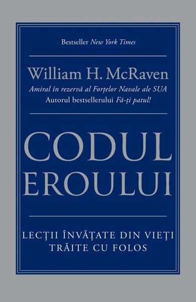 Bestseller New York Times Codul eroului este omagiul vibrant pe care amiralul McRaven îl aduce eroilor reali, de zi cu zi, pe care i-a întâlnit de-a lungul anilor, de pe câmpul de lupta pâna la spitale ¿i campusuri universitare, care contribuie la salvarea lumii. În copilaria sa petrecuta în Texas, Bill McRaven visa sa fie supererou. οi dorea sa-¿i puna pe spate o pelerina ¿i sa-¿i foloseasca superputerile pentru a salva Pamântul de distrugere. Dar acel baie¿el a crescut ¿i a început sa calatoreasca prin lume, întâlnind eroi peste tot - ¿i niciunul dintre ei nu avea superputeri. Niciunul nu purta pelerina sau gluga. Dar cu töii aveau calitäi care le dadeau puterea sa-i ajute pe al¿ii, sa faca lucruri importante, sa salveze lumea: curaj - atât fizic, cât ¿i moral; spirit de sacrificiu, sim¿ul datoriei, integritate, capacitatea de a ierta. Codul eroului nu este un cifru, un puzzle sau un mesaj secret care trebuie descifrat. Este un cod de conduita, alcatuit din lec¿ii despre virtüile ce pot deveni temelia caracterului nostru pe masura ce ne construim o viäa demna de onoare ¿i respect. "Autorul reüe¿te sa demonstreze faptul ca, pentru a se comporta excep¿ional, oamenii nu trebuie sa se afle în circumstan¿e excep¿ionale. O carte profunda ¿i însufle¿itoare." - Kirkus Reviews "Aceasta carte este despre eroi ¿i despre virtüile lor... Pentru unii, sa traiasca conform Codului eroului este ceva firesc. Dar cei mai mul¿i dintre noi trebuie sa înväam cum sa scoatem la lumina aceste calitäi. Trebuie sa le identificam în vie¿ile altora ¿i sa încercam sa le oglindim în noi în¿ine." - William H. McRaven