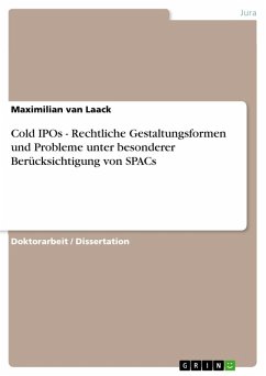 Doktorarbeit / Dissertation aus dem Jahr 2011 im Fachbereich Jura - Zivilrecht / Handelsrecht, Gesellschaftsrecht, Kartellrecht, Wirtschaftsrecht, Note: "mit Auszeichnung bestanden", Universität Wien, Sprache: Deutsch, Abstract: Die vorliegende Dissertation beschäftigt sich mit den rechtlichen Erscheinungs- und Gestaltungsformen von Cold IPOs und den in diesem Zusammenhang bestehenden gesellschafts- und kapitalmarktrechtlichen Fragen in Deutschland und Österreich. Vor diesem Hintergrund werden die einzelnen Verfahrensschritte des Cold IPOs und die damit einhergehenden rechtlichen Fragen aufgezeigt. Aus gesellschaftsrechtlicher Sicht werden insbesondere die Auswirkungen der BGH-Rechtsprechung zur Mantelverwendung auf einen Cold IPO besprochen. In kapitalmarktrechtlicher Hinsicht wird die Frage behandelt, inwieweit die Börsenzulassungsvoraussetzungen mittels eines Cold IPOs umgangen werden und welche Konsequenzen eine etwaige Umgehung nach sich zieht. Zudem wird geklärt, ob im Zuge eines Cold IPOs die Pflicht zur Abgabe eines Übernahmeangebots entsteht. Darüber hinaus wird untersucht, ob die als Börsenvehikel dienende Gesellschaft im Vorfeld des Cold IPOs eine Ad- hoc-Meldung veröffentlichen muss und inwieweit sich eine entsprechende Veröffentlichung auf die Umsetzung der Transaktion auswirkt. Ferner wird die Frage behandelt, ob und unter welchen Voraussetzungen es im Zuge eines Cold IPOs zu übernahmerechtlichen Nachzahlungspflichten kommen kann. Abschließend werden die sog SPACs (Special Purpose Acquisition Companies) thematisiert. Dabei werden zunächst die typischen Wesensmerkmale eines SPACs und der Ablauf einer SPAC-Transaktion dargestellt. In rechtlicher Hinsicht wird insbesondere die Frage behandelt, ob ein SPAC in Deutschland und Österreich zur Börse zugelassen werden kann. Ferner wird geklärt, ob sich die spezifischen Merkmale einer SPAC- Gesellschaft auch mittels einer deutschen bzw österreichischen Aktiengesellschaft abbilden lassen.