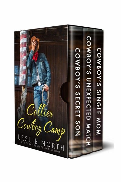 Welcome to the Collier Cowboy Camp, home to three rugged cowboys whose hearts are about to be lassoed by three strong women in Leslie North's sexy new trilogy. Rodeo star Remington Collier is back home-and this time, he's sticking around for good. But convincing Melody Naly that he'll be true to his word is going to be a challenge, maybe even more challenging than becoming a father for the son he didn't know he had. Remington will have to prove he's the man Melody deserves at her side in Cowboy's Secret Son. In Cowboy's Unexpected Match, Taison Butler is only in town until he's recovered from a rodeo injury, and then he's back on the circuit. But his resolute rodeo plans are jeopardized when he meets the distractingly sexy vet, Emme Lion. Lucas Meyer has had a superstar rodeo career that he's going to see to the very end. But single mom Georgia Nathan, the camp's physical therapist, might be able to fix his battered body while he is given a chance to fix her broken heart in Cowboy's Single Mom. Secret babies, second chances, and single moms tempt these three wandering men to put down roots with the women they love. Could Collier Cowboy Camp become their forever home?
