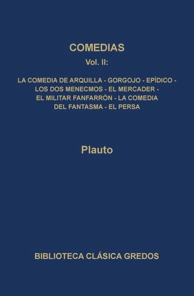 Plauto, el más hilarante comediógrafo latino, adaptó con originalidad las obras de la Comedia Nueva griega, y su influencia se extiende hasta El avaro de Molière y la faceta cómica de Shakespeare. Las veinte comedias que se nos han conservado de Plauto (h. 250-184 a.C.), todas ellas adaptaciones de la Comedia Nueva griega, bastan para asegurar al autor su puesto de máximo comediógrafo latino. Con un uso muy libre y animado de los originales, simplificando la trama para agradar a un público romano popular, Plauto cosechó un éxito inmediato. Sus comedias plantean situaciones típicas o descabelladas, personajes prototípicos, chistes groseros, equívocos, enredos y todo un arsenal de recursos escénicos destinados a suscitar risotadas inmediatas, algunos de los cuales las convierten en comedias musicales. Plauto es un maestro en el uso del lenguaje coloquial, y no se abstiene de incurrir en obscenidades y groserías. Es un fino psicólogo que revitaliza los personajes de las comedias griegas: jóvenes calaveras, prostitutas, alcahuetas, traficantes de esclavos, viejos verdes, parásitos, soldados fanfarrones, etc. El genio de Plauto consiste en el juego constante que mantiene con el público acerca de la realidad y la ilusión, en su capacidad de extraer todas las posibilidades de las situaciones y los personajes, en la variedad de registros lingüísticos que usa con absoluto desparpajo y maestría. Este segundo volumen contiene La comedia de Asquilla (en estado fragmentario, obra de infidelidades, nacimientos secretos y desvelamientos), Gorgojo (sobre los amoríos de dos jóvenes obstaculizados por un viejo y achacoso rufián, y los intentos de los primeros por desembarazarse del segundo con la asistencia de un gorrón), Epídico (de intrincada trama, acerca de equívocos sobre hijas y amantes, amos y esclavos, viejos y jóvenes), Los dos Menecmos (desternillante pieza de equívocos sobre dos hermanos gemelos, uno desaparecido, el otro confundido con él por una cortesana, la esposa, el suegro...), El mercader (menos cómica y más lacrimógena de lo que es habitual en Plauto, sobre la conversión de una esclava en amante), El militar fanfarrón (comedia bufa sobre el Miles gloriosus grotesco en sus presunciones ridículas, el joven galán, la esclava atada al viejo), La comedia del fantasma (en que un joven despilfarra el patrimonio de su padre, ausente en viaje de negocios, y el esclavo del primero trata por todos los medios de que el segundo no se entere) y El persa (una suerte de sainete, de trama simple y trivial, pero amable y divertida, acerca de liberaciones de esclavas y engaños a rufianes).