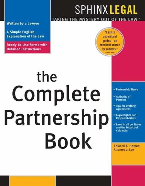 Are you considering entering into a partnership? Have you taken the correct steps to protect yourself in case your future partner does not hold up his or her end of the partnership?The Complete Partnership Book takes you through the process of forming your own partnership, while giving you tips to make sure you are protected once the partnership begins. Complete with step-by-step instructions and the agreements and forms you need, this book makes forming your own partnership inexpensive and hassle-free.--Selecting Your Partner with Confidence--Writing Your Own Agreement--Changing Partners--Selling a Partner's Interest --Ending a PartnershipReady-to-Use Forms with Instructions:--Partnership Agreements--Buy-Out Agreements--Termination Agreements--and many more...--Uniform Partnership Act--Revised Uniform Partnership Act--Additional optional clauses--Step-by-Step instructions--Plain-English glossary of terms--Ready-to-use, blank forms