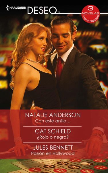 Con este anillo... Natalie Anderson Ana no se podía creer su buena suerte cuando el irresistiblemente sexy Sebastian Rentoul le propuso matrimonio. Él no la hacía sentir como una larguirucha desgarbada y torpe, sino como una supermodelo despampanante y deseable. Hasta que se dio cuenta de que ser su mujer no significaba tener su amor. ¿Rojo o negro? Cat Schield Missy Ward era la secretaria eficiente y discreta de Sebastian Case. Pero nada más llegar a Las Vegas, la recatada profesional se transformó por completo. Pasó de ser una chica del montón a una mujer arrebatadora, sensual e irresistible. Y Sebastian, que jamás la había visto como una mujer, quedó bajo el influjo de sus encantos. Pasión en Hollywood Jules Bennett ¿Quién era la exótica belleza que iba del brazo del atractivo Bronson Dane, el playboy y productor cinematográfico? Era Mia Spinelli, de la que se rumoreaba que había sido la amante de su jefe anterior, el enemigo de Bronson desde hacía muchos años. Ahora, ella era la asistente personal de la madre de Bronson. ¿Estaba Mia asistiendo también íntimamente a Bronson?