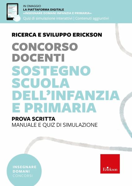 La Prova Scritta del Concorso docenti è computer-based e consiste in quesiti a risposta multipla volti all'accertamento delle conoscenze di pedagogia, psicopedagogia e metodologie didattiche, nonché di informatica e lingua inglese. I 29 contributi presenti in questo volume, scritti da specialisti ed esperti del settore, approfondiscono dettagliatamente temi di psicopedagogia e didattica, strategie di lavoro con alunni con disabilità e BES e organizzazione e governance della scuola. I principali profili di funzionamento presi in considerazione sono: disabilità intellettiva, disabilità e difficoltà motorie, difficoltà di linguaggio e nella comunicazione, difficoltà nella sfera emotiva, ADHD, disturbo dello spettro dell'autismo e disabilità sensoriali. .10 contributi sulla psicopedagogia e didattica; .16 contributi su disabilità e bisogni educativi speciali; .3 contributi su organizzazione e governance della scuola; .quiz interattivi di simulazione sulla piattaforma digitale.