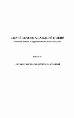C'est dans le cadre de ses travaux de recherche sur les maladies mentales que Charcot va demander a Janet de donner en 1892 une serie de conferences sur l'anesthesie, l'amnesie et la suggestion chez les hysteriques. C'est le texte original de ces trois conferences qui est reproduit ici. Ce livre agremente d'une preface inedite, s'adresse aux psychologues, psychiatres, historiens et etudiants desireux de decouvrir les premiers enseignements de Janet a la Salpetriere.