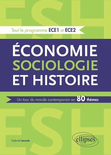 Économie, sociologie et histoire : trois regards croisés sont proposés ici pour mieux comprendre le monde contemporain dans sa complexité. Cet ouvrage est composé de 80 fiches thématiques et synthétiques pour aborder l'ensemble du programme de 1re et 2e années d'ESH des classes préparatoires ECE. Chaque thème traite : . les principales notions à maîtriser, . les mécanismes et auteurs essentiels à connaître, . des sujets extraits des annales, d'écrit et d'oral. . des renvois, pour permettre une lecture croisée du livre. Destiné aux étudiants des classes préparatoires économiques et commerciales, voie éco., les étudiants en licence d'économie y trouveront également des éléments pour aborder sereinement les grands thèmes de l'histoire économique.