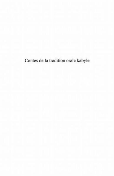 Voici transcrits dans leur version originale, adaptes en francais et rassembles dans ce volume, les textes de contes de la tradition orale kabyle de la region de la Kabylie Orientale (Ait Wejhan et les Ait Slimane).