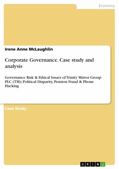Case Study from the year 2016 in the subject Business economics - Business Management, Corporate Governance, grade: 77%, University of Ulster, course: Corporate Governance, language: English, abstract: This study will analyse governance, risk and ethics with the example of TM, whom has struggled in nearly every area; and discuss whether it is possible to act in the interests of all stakeholders in an industry that has a primary role as the seller of "brash reporting of show business stars". Corporate governance has been quoted as the exercise of power over corporate entities. Trinity Mirror (TM, known today as the "Daily Mirror Newspaper") launched in 1903 as a pro-women newspaper which has a long history of corporate governance, risk and ethics swaying from diversity to insolvency, unethical trade, treason, audit abuse, and unethical reporting/management. This analysis will consider the corporate governance issues; theories, academic, professional or legal literature/regulations; and whether the events of Trinity Mirror & their responses are consistent or in contrast with those theories. This study further ponders if their responses were suitable, and if similar events occurred whether the current system of governance and accountability is sufficient. It concludes with the lessons learnt and an investment decision criterion for TM.