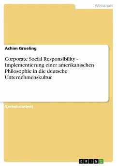Bachelorarbeit aus dem Jahr 2005 im Fachbereich BWL - Offline-Marketing und Online-Marketing, Note: 2,0, Hochschule für Technik und Wirtschaft Berlin, Sprache: Deutsch, Abstract: Die klassische soziale Marktwirtschaft ist im Umbruch. Die öffentliche Kapitalismusdebatte um Managementgehälter, Arbeitsplatzabbau und Umweltnormen sowie der schärfer werdende globale Wettbewerb zwingen Unternehmen zu einem Wertewandel. Da Unternehmen nicht unabhängig von ihrer Umwelt und der Gesellschaft agieren können, suchen Wirtschaft, Politik und Verbände gleichermaßen nach Antworten auf die Ansprüche einer stetig aktiver wirkenden Zivilgesellschaft. Gerade in Deutschland sind die Unternehmen aufgrund der Reduktion der sozialen Systeme herausgefordert, freiwillig oder auf gesetzlicher Basis, Teile urstaatlicher Kompetenz und Verantwortung zu übernehmen. Das amerikanische Konzept der "Corporate Social Responsibility", also die gesellschaftliche Verantwortung von Unternehmen, erscheint als Patentrezept. Die vorliegende Arbeit erstellt für das CSR-Konzept eine theoretische Basis, an welcher die Anforderungen sowie die Bedeutung von CSR dargelegt wird. Nach der Grundlegung der Theorie werden die Mechanismen zur kommunikativen Umsetzung des Konzeptes vorgestellt. Im Ergebnis wird eine mögliche Einbettung des CSR Konzeptes in die deutsche Unternehmenskultur aufgezeigt.