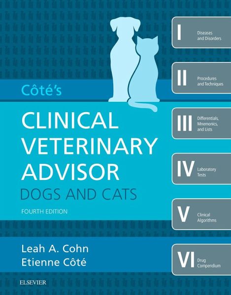 **Selected for Doody's Core Titles® 2024 in Veterinary Medicine** The indispensable resource for the busy small animal practitioner. Providing easy-to-use, cutting-edge information, Côté's Clinical Veterinary Advisor: Dogs and Cats, 4th Edition is like six books in one - with concise coverage of diseases and disorders; procedures and techniques; differentials, mnemonics, and lists; laboratory tests; clinical algorithms; and a drug compendium. Completely updated from cover to cover, this edition includes over a dozen all-new chapters on new and important topics including hyperadrenocorticism (food-related), hypercalcemia (idiopathic feline), meningoencephalitis of unknown etiology, incidentally-detected heart murmurs, and more. It also includes free access to a fully searchable companion website containing an electronic version of the text, all of the book's images in color, bonus chapters and video content, a searchable drug compendium, 200 client education handouts in both English and Spanish, and 35 customizable client consent forms. - UPDATED! Videos demonstrate important findings that static images cannot convey, such as characteristic lameness and ultrasound findings. - UPDATED! Tech Tips cover more than 850 diseases and disorders that are especially relevant to the technician's daily experience in the clinic. - UPDATED! 200 customizable printable client education handouts are included online and available in English or Spanish. - Highly referenced diseases and disorders presented in alphabetical order makes sought-out information easy to retrieve. - Extensive cross referencing throughout the text offers quick access to all pertinent information. - Hundreds of expert international contributing authors ensure the information is the most accurate and up-to-date. - SIX-BOOKS-IN-ONE offers invaluable content, such as diseases and disorders; procedures and techniques; differential diagnosis; laboratory tests; clinical algorithms; and drug formulary. - Pedagogical icons reflect content to alert readers to unique elements within each monograph. - Vibrant website with searchable content and extensive bonus material enhances information from the print book.