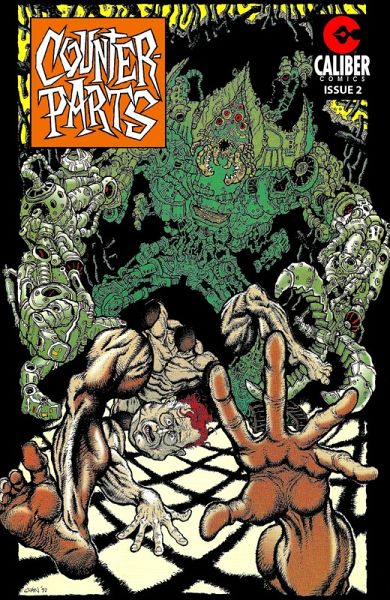 A Story in Three Parts, a Character in Six. Think people can be disingenuous? Of course they can and in the future they try on new personas like hats. Unfortunately, Hieronymus Jones overdoes it with the TPGs (temporary personality grafts), leaving his original personality utterly destroyed. That would be okay, since he's kinda boring, until an experimental cure gives him not one, but six new permanent personalities. Rather than fight over territory, each inhabits a different part of his body, and soon finds they can break apart at will! There's: Bogey, the hard-boiled right arm; Kik-li, the Kung-Fu master right leg; Jake, the self-involved torso; Buckley, the too-smart head; Don, the romantic left arm and; Tootsie, the femme fatale left leg! Together, they fight corruption and crime as the strangest superhero team ever! In this issue: "e;An Arm and a Leg"e;, no one is legit! The Counter-Parts team is approached for help by rebel leader Bernardo, whose own personality is actually a TPG. Meanwhile, Sherman Derkle, Jr. son of Sherman Derkle, Sr., CEO of the evil corporation producing TPGs, secretly aids the rebels to bring down his own father. From the mind of bestselling author Stefan Petrucha.